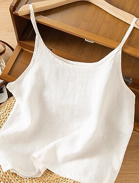Dámské Bavlněné lněné košile Halenka Bez vzoru Moderní Na běžné nošení Bez rukávů Ramínka Běžné topy Dovolená Jdeme ven Černá Bílá Fialová Meruňková Léto