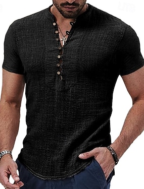 Pánské Košile Lněná košile Košile s páskovým límečkem Popover košile Letní košile Oblečení na pláž Bez vzoru Dovolená Ležérní Černá Bílá Žlutá Světlá růžová Krátký rukáv Henley Léto Oblečení