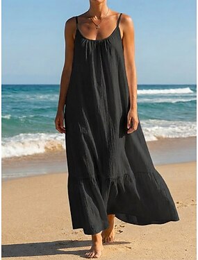 Dámské Šaty ke kolenům Boho šaty Letní šaty Volnočasové šaty Bavlněné šaty Elegantní Módní Moderní Venkovní Dovolená Jdeme ven Běžný Bez vzoru Bez rukávů Do U Vodní modrá Černá Bílá Šedá Léto Jaro