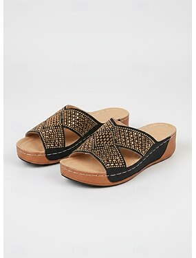 Dámské hnědé sandály na platformě s klínkem – ležérní retro styl, podpůrná podrážka pro každodenní pohodlí, doma, na nakupování a neformální výlety