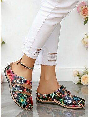 Dámské nazouvací pantofle s dutým podpatkem – vintage sandály z umělé kůže, ideální na neformální procházky, brunch na zahradě, venkovní umělecký trh a jarní cestování