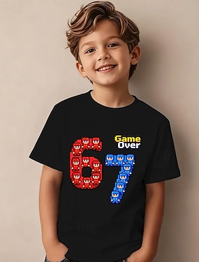 100% bavlněné dětské chlapecké tričko s vtipným slangovým potiskem 67, černé, bílé, červené, s potiskem, halenka, kulatý výstřih, krátký rukáv, outdoorové oblečení na každý den, módní streetwear,