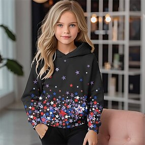 Americký den nezávislosti Dívčí 3D Vlajka Kapuce Dlouhý rukáv Jaro Podzim Módní Šik ven Děti 4-12 let Kapuce Venkovní Ležérní Denní Běžný
