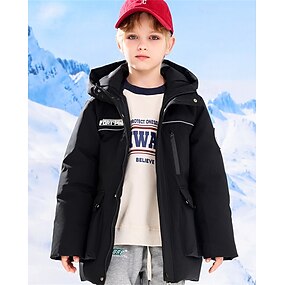 Děti Unisex Péřová bunda Mikina s kapucí Puffer Jacket Svrchní oděvy Písmeno Dlouhý rukáv Zahřívací Větruodolné Kabát Ležérní Denní Základní Černá Rubínově červená Podzim Zima 4 roky +
