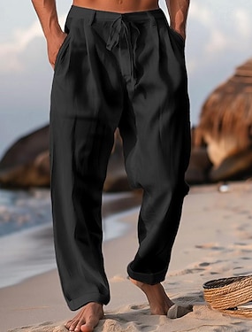 Pánské Kalhoty Letní kalhoty Plážové kalhoty Šňůrky Záhyby Straight-Leg Bez vzoru Pohodlné Prodyšné Plná délka Ležérní Denní Dovolená Módní Klasický styl Černá Bílá