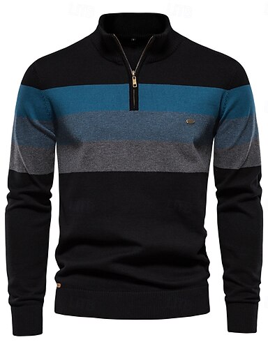 Pánské Svetr Pulovrový svetr Úplet Rýhovaný Plést Běžné topy Zip Barevné bloky Přehnutý Úplet Neutrální Venkovní Oblečení Jaro & podzim Černá Námořnická modř S M L