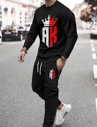 Pánské Grafika sestřih 2ks Sady 3D mikin Tepláková souprava Dlouhý rukáv Dlouhé kalhoty Tričkový Šik ven Sportovní oblečení Základní Sporty a outdoor Ležérní Sport Tisk Jaro Podzim Černobílá Čern