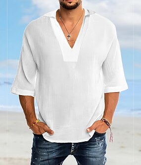 Pánské Košile Bavlněná lněná košile Bílá bavlněná košile Letní košile Košile pro volný čas Plážová košile Bez vzoru Dovolená Ležérní Bílá Světlá růžová Vodní modrá Krátký rukáv Do V Jaro léto Oblečení