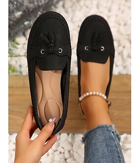 Dámské casual modré mokasíny - Měkké semišové slip-on flats s detailem třásně pohodlné řidičské boty pro každodenní nošení