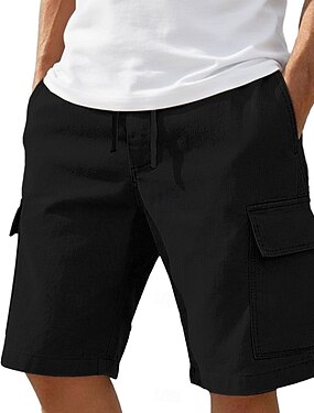 Pánské Šortky s kapsami Lněné šortky Letní šortky Plážové šortky Šňůrky Elastický pas Multi kapsa Bez vzoru Pohodlné Prodyšné Délka kolen Venkovní Práce Denní Klasický styl Na běžné nošení Černá Bílá