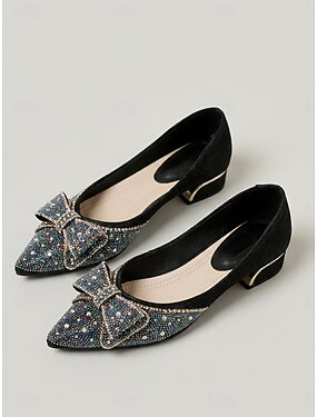 Dámské lodičky na nízkém podpatku s třpytkami v šampaňském stylu, boty s mašlí a špičatou špičkou pro matku nevěsty, svatba v zahradě &formální události
