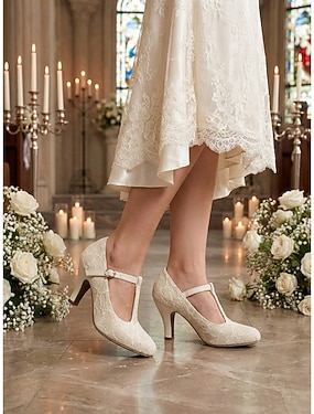 Dámské ivory krajkované lodičky T-Strap s středním podpatkem - svatební obuv pro nevěsty a formální akce ve stylu vintage Gatsby z 20. let