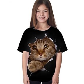 Dívčí 3D Grafika Zvíře Kočka Tričko Košilky Krátký rukáv 3D tisk Aktivní Roztomilý Děti 3-12 let