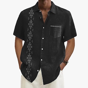 Pánské Košile na knoflíky Krátký rukáv Vinobraní Havajské Na běžné nošení Dovolená Na den Léto Jaro Košile s límečkem Tlačítko nahoru Kapsy 3D tisk filigrán Khaki + Khaki Černá Světle zelen