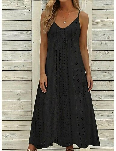 Dámské Midi šaty Bílé šaty Volnočasové šaty Letní šaty Šaty s očkem Módní Moderní Denní Plážové Dovolená Běžný Květinový Bez rukávů Do V Černá Bílá Světlá růžová Fialová Léto Jaro