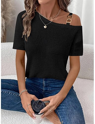 Dámské Tričko Tričko Top Slátanina Bez vzoru Módní stylové Klasické Krátký rukáv Asymetrický krk Běžné topy Denní Jdeme ven Víkend Vodní modrá Černá Bílá Fialová Trávová zelená Léto Jaro