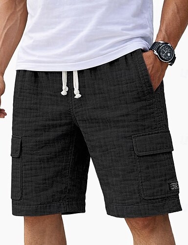 Pánské Šortky s kapsami Kraťasy Letní šortky Plážové šortky Neformální šortky Šňůrky Elastický pas Pevná barva S texturou Pohodlné Krátký Denní Venkovní Streetwear Módní Retro Vodní modrá Černá