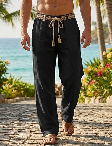 Pánské Kalhoty z tencelového lnu Kalhoty Letní kalhoty Plážové kalhoty Šňůrky Kapsy Elastický pas Bez vzoru Pohodlné Prodyšné Plná délka Denní Venkovní Plážové prázdniny Módní Černá Bílá Neelastické