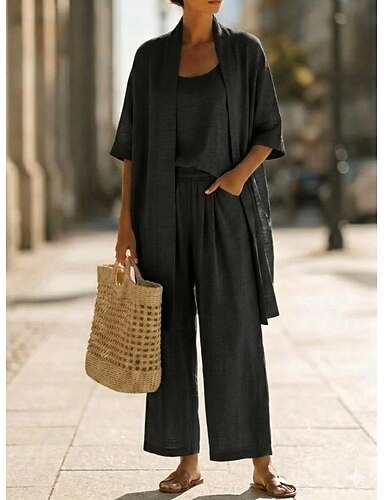 Dámské Sady kalhot Imitace bavlny a lnu Bez rukávů Rolák Bez vzoru Módní Šik ven Ležérní Denní Venkovní Vodní modrá Černá Armádní zelená Jaro léto Volný