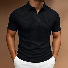Pánské Polokošile Golfová košile Ležérní Dovolená Žebrovaný polo límec Krátký rukáv Módní Základní Bez vzoru Kapsy Klasika Léto Běžný Námořnická modř Černá Bílá Tmavě červená Šedá Světle modrá