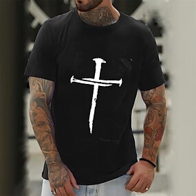 Pánské grafické tričko s designem křesťanského kříže a srdečního tepu | Náboženská víra s krátkým rukávem