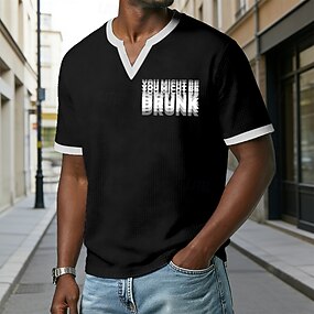 Pánské bob střih, vtipné, humorné, vaflové, pletené, s výstřihem do V, tričko s krátkým rukávem a potiskem, ležérní střih, denní nošení, dárek pro něj, značkové oblečení, velikosti S M L XL XXL XXXL
