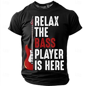 Pánské tričko s nápisem „Relax The Bass Player Is Here“ s vtipným potiskem a nápisem „baskytarista“ pro hudebníky, dárek k narozeninám, elektrická baskytara, vtipné tričko, vintage styl, neformální, s