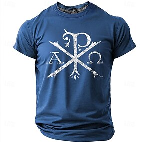 Pánská Bible Chi Rho Alfa Symbol Christogram Křesťanská Bible Náboženské Vintage Ošuntělé T Tričko Grafika Neformální Krátký Rukáv Církevní Oblečení Designér Oblečení