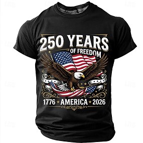 250. výročí 1776 2026 pánské vlastenecké tričko s americkou vlajkou a motivem orla bělohlavého s grafikou, kulatý výstřih, krátký rukáv, oslava čtvrtého července, půlkvětinové výročí, dárek, značkové