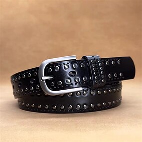 Pánské Opasek z pravé kůže Pás Přezka na špendlík Detail s cvočky dermis Slitina Vinobraní Klasické Odolné Nastavitelná Bez vzoru Vodní modrá Černá Venkovní Denní Do pasu
