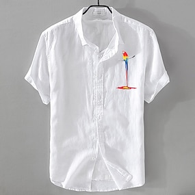 Pánské Košile Lněná košile Letní košile Plážová košile Košile na knoflíky Ptáček Dovolená Ležérní Černá Bílá Světlá růžová Vodní modrá Krátký rukáv Přehnutý Léto Oblečení
