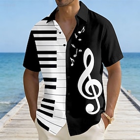 Pánské Klavír Hudební noty Košile Letní košile Košile na knoflíky Krátký rukáv Vintage Retro Venkovní Dovolená hudební festival Léto Přehnutý 3D tisk Len jako košile Vodní modrá Černá Fialová Trávov
