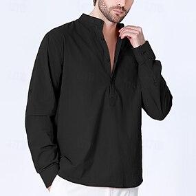 Pánské Košile plátěná košile Čínská košile s límečkem Košile s mandarinkovým límečkem Popover košile Košile pro volný čas Bez vzoru Dovolená Havajské Černá Bílá Béžová Světle modrá 3/4 délka rukávu