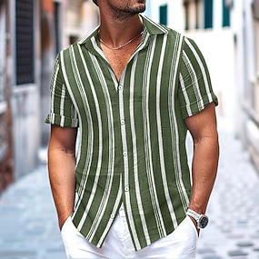 Pánské Košile Letní košile Oblečení na pláž Košile na knoflíky Košile pro volný čas Námořnická modř Vodní modrá Trávová zelená Krátký rukáv S proužky Klopa Denní Dovolená Oblečení Módní Na běžn