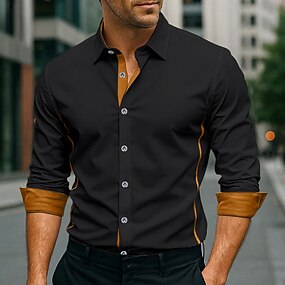 Pánské Košile Košile k obleku Barevné bloky Kancelář a kariéra Svatebnívečírek Černá Bílá Námořnická modř Modrá Dlouhý rukáv Klopa Jaro & podzim Oblečení Přední kapsa