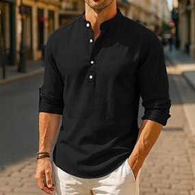 Pánské Košile Lněná košile Košile s páskovým límečkem Popover košile Letní košile Oblečení na pláž Bez vzoru Dovolená Denní nošení Černá Bílá Žlutá Fialová Dlouhý rukáv Henley Léto Jaro Oblečení