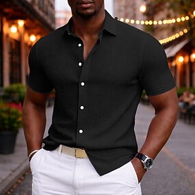 Pánské Košile Žebrovaný pletený Struktura Košile pro volný čas Košile na knoflíky Černá Bílá Světle zelená Bordó Námořnická modř Krátký rukáv Bez vzoru Košilový límec Ležérní Denní Přední kapsa