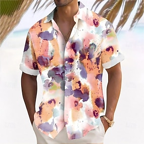 Pánské Květiny Košile Košile na knoflíky Krátký rukáv Móda pro volný čas Denní Venkovní Dovolená Léto Jaro Přehnutý 3D tisk Len jako košile Vodní modrá Žlutá Fialová