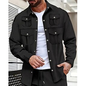 Pánské Košile Košile na knoflíky Košile pro volný čas Pracovní košile Nákladní košile Černá Žlutá Armádní zelená Námořnická modř Vodní modrá Krátký rukáv Bez vzoru Přehnutý ulice Ležérní Tlačítko dolů