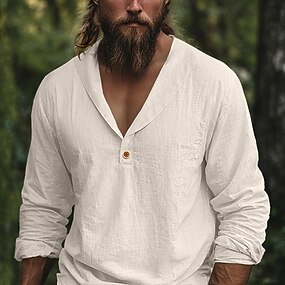 Pánské Košile Letní košile Oblečení na pláž Košile s páskovým límečkem Košile na knoflíky Košile s dědečkovým límcem Bez vzoru Ležérní Denní Vodní modrá Černá Bílá Světlá růžová Dlouhý rukáv