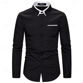 Pánské Košile Košile k obleku Košile na knoflíky Bez vzoru Svatební Párty Černá Bílá Námořnická modř Modrá Dlouhý rukáv Klopa Jaro Podzim Oblečení Kapsy