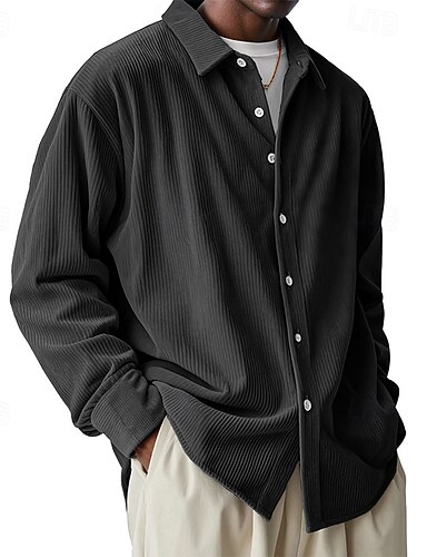 Pánské Kordurová košile Černá Fialová Hnědá Šedá Dlouhý rukáv Bez vzoru Přehnutý Škola Trénink Kapsy Oblečení Vinobraní Klasické Na běžné nošení