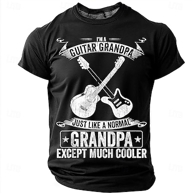 Pánské tričko s nápisem „I'm a Guitar Grandpa“ jako normální dědeček, až na to, že má mnohem lepší vzhled, zkřížené kytary, vintage styl, retro, s potiskem, regular střih, dárek ke Dni otců, značkové