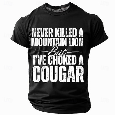 Pánské grafické tričko - "Nikdy jsem nezabil horského lva ale udusil jsem pumu" vtipné puny tričko s krátkým rukávem