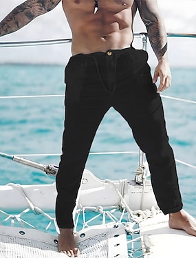 Pánské Plátěné kalhoty Kalhoty Letní kalhoty Plážové kalhoty Šňůrky Kapsy Elastický pas Bez vzoru Pohodlné Prodyšné Dovolená Denní Plážové Havajské Cikánský Černá Bílá