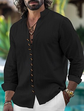 Pánské Košile plátěná košile Košile pro volný čas Plážová košile Černá Bílá Modrá Dlouhý rukáv Bez vzoru Stojáček Jaro léto Havajské Dovolená Oblečení Základní