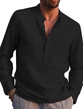 Pánské Košile Lněná košile Košile na knoflíky Bez vzoru Dovolená ulice Černá Bílá Námořnická modř Khaki Dlouhý rukáv Stojáčkový límec Léto Jaro Oblečení Knoflíky