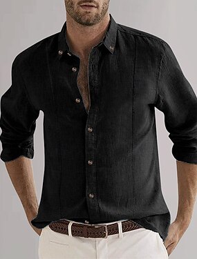 Pánské Bavlněná lněná košile Bez vzoru Dovolená Běžné / Denní Černá Bílá Nebeská modř Khaki Dlouhý rukáv Klopa Oblečení Tlačítko dolů