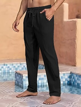 Pánské Plátěné kalhoty Kalhoty Letní kalhoty Volné kalhoty Plážové kalhoty Šňůrky Elastický pas Straight-Leg Bez vzoru Pohodlné Prodyšné Plná délka Venkovní Denní Dovolená prázdniny Módní Černá Bílá