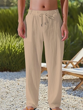 Pánské Plátěné kalhoty Kalhoty Letní kalhoty Plážové kalhoty Šňůrky Elastický pas Straight-Leg Bez vzoru Lehká váha Prodyšné Plná délka Ležérní Denní Dovolená prázdniny Módní Σκούρο Χακί Černá